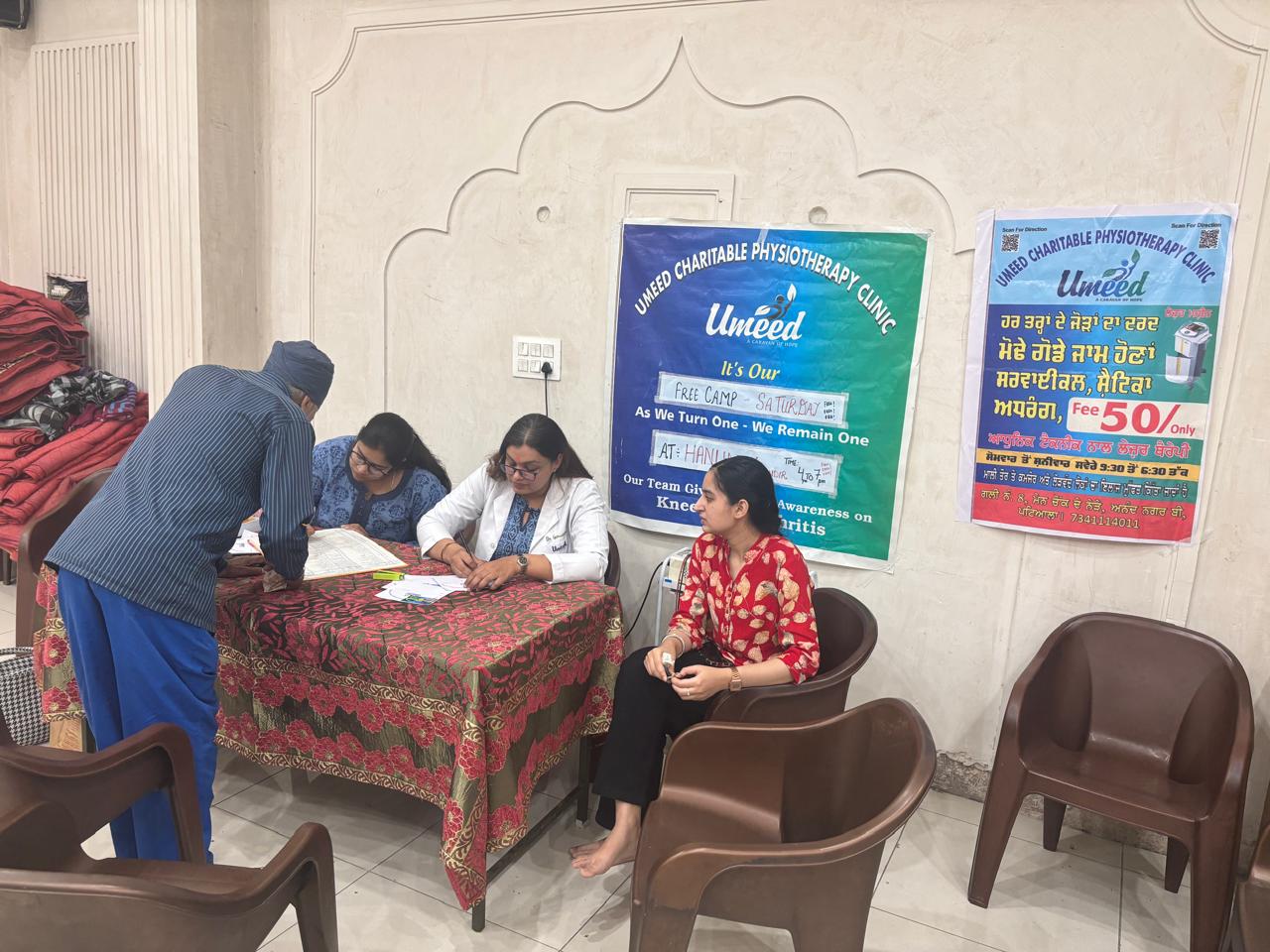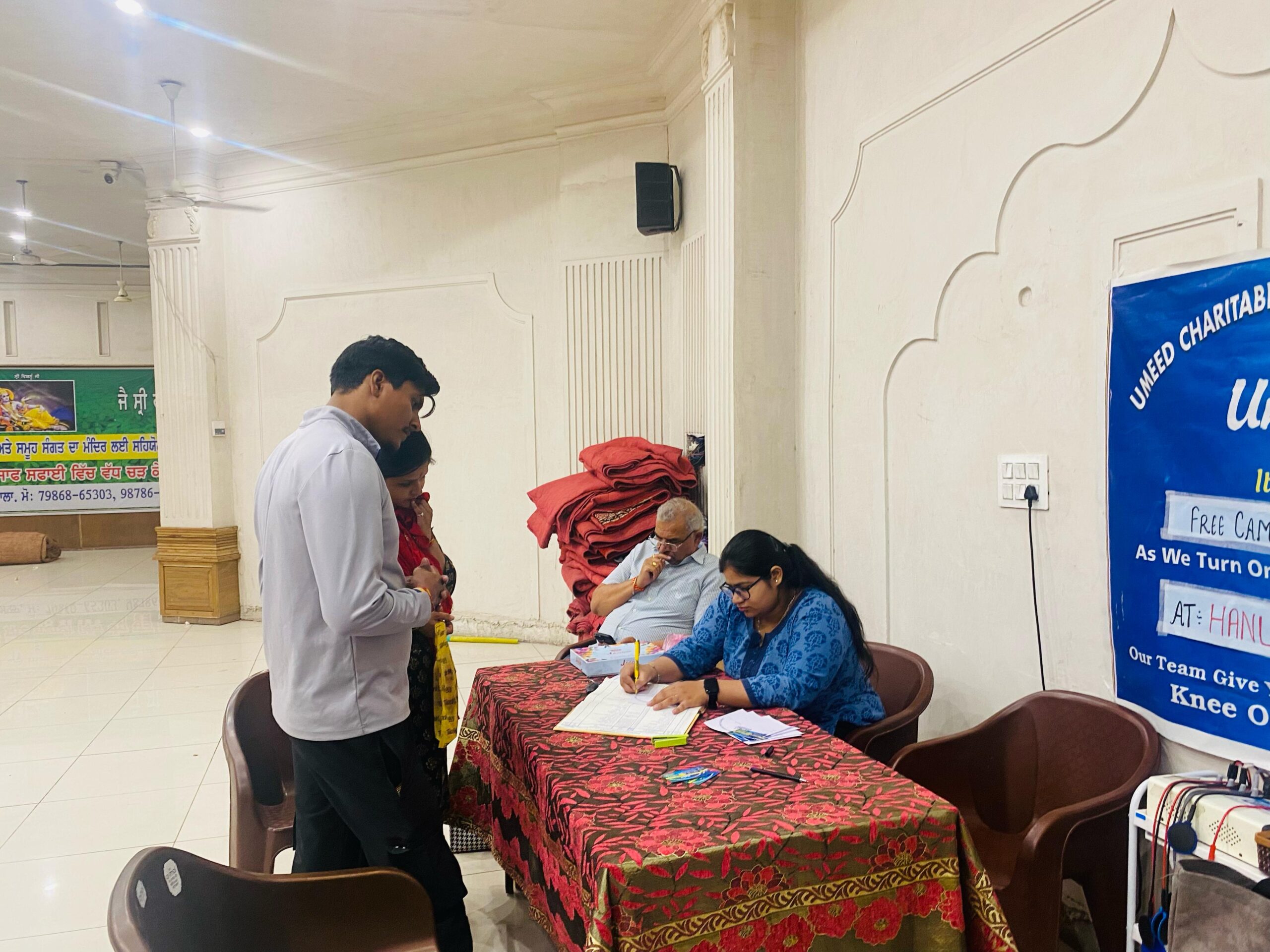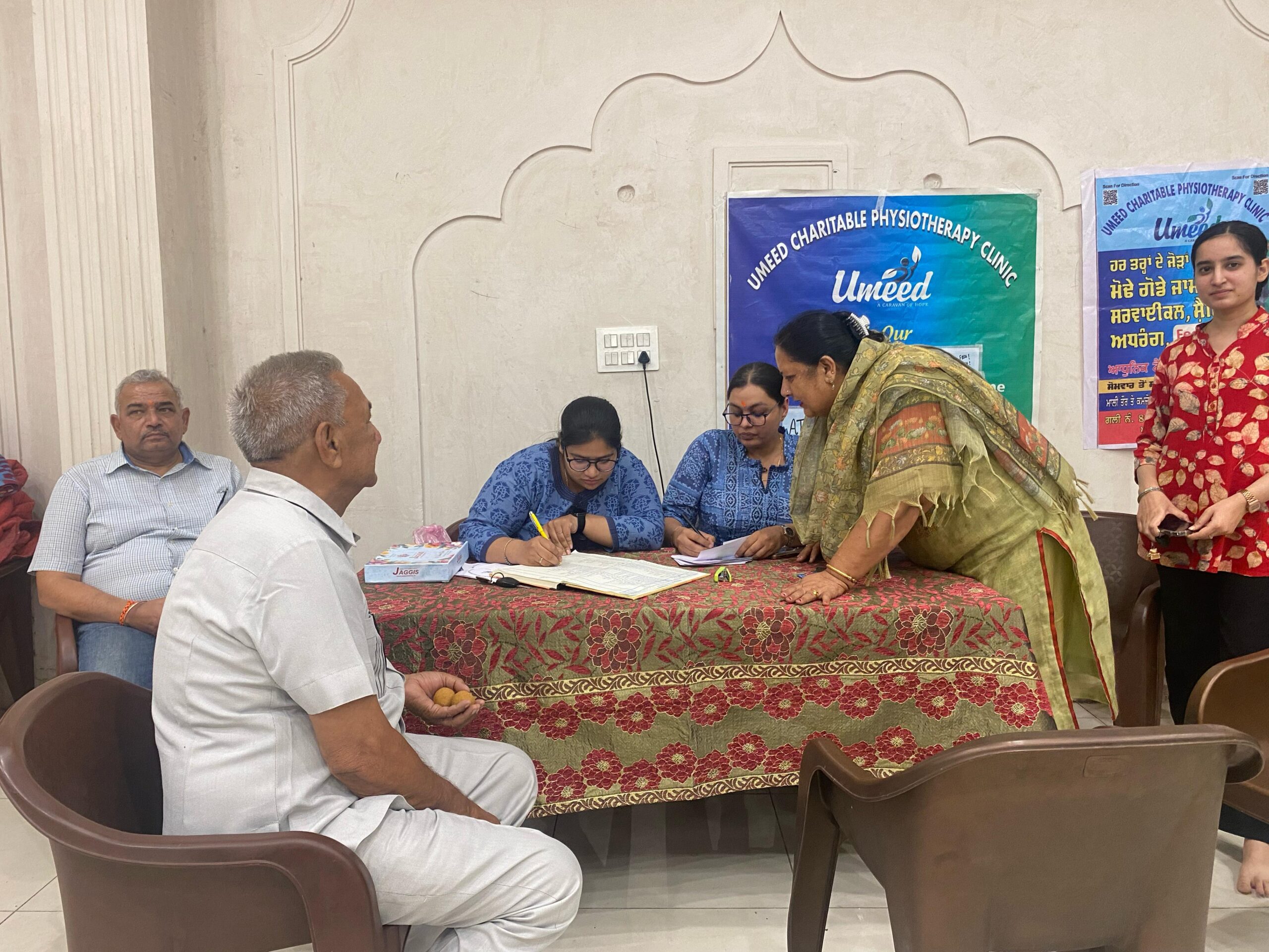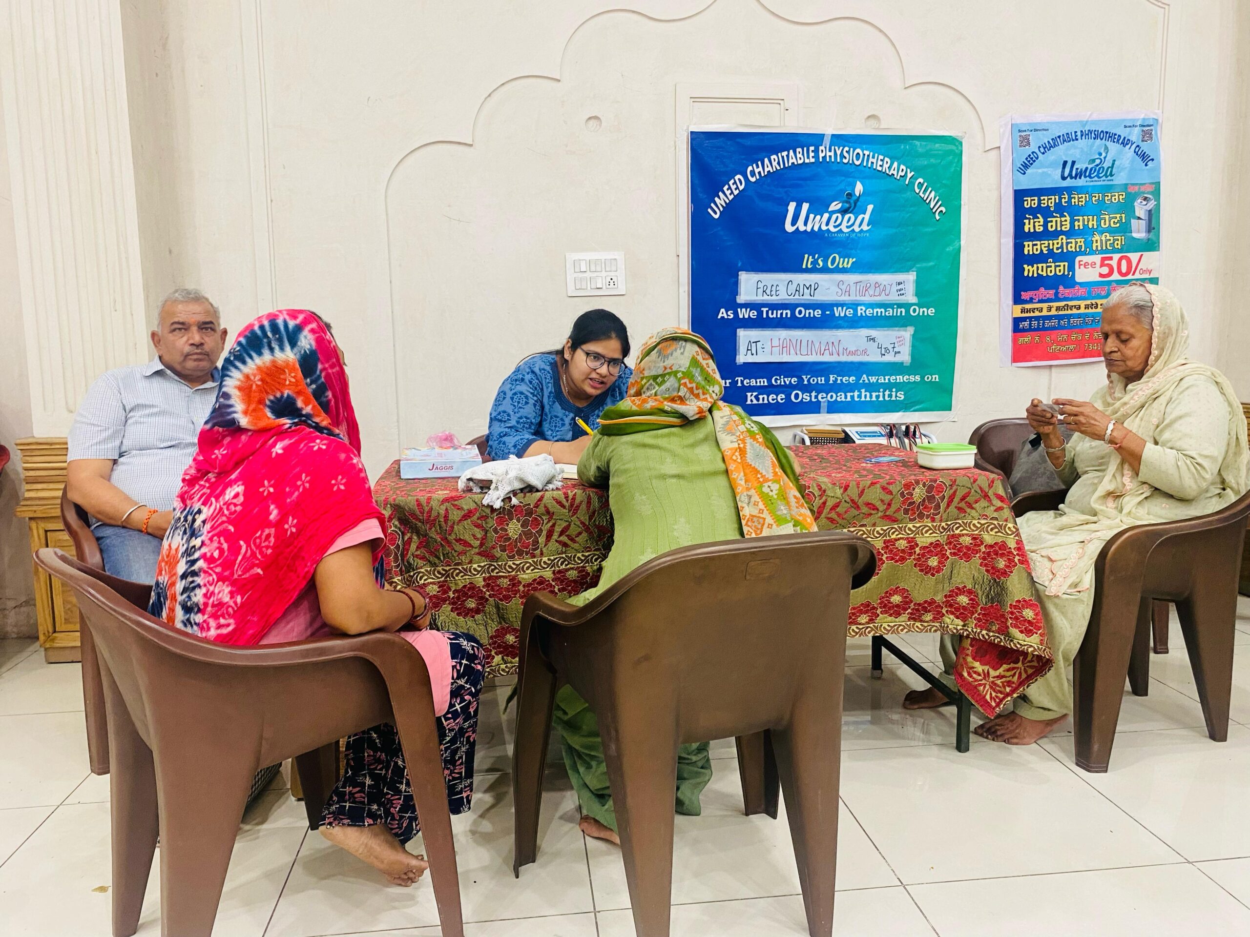 A free medical camp was successfully organized on 12-4-2015 on occasion of Hanuman jayanti at Hanuman Mandir, Gali No. 9, Anand Nagar, Patiala, with the aim of serving the local community. The camp was conducted by the UMEED Charitable Physiotherapy Center under the guidance of esteemed doctors—Dr. Gurvinder, Dr. Gurbandan, and Dr. Gurjot—along with their dedicated field staff . Around 42 patients were examined /treated during the camp. This charitable initiative provided much-needed medical consultation and care, absolutely free of cost, reflecting a strong spirit of community service and compassion. This camp was organized with the support of Mandir Committee and its President